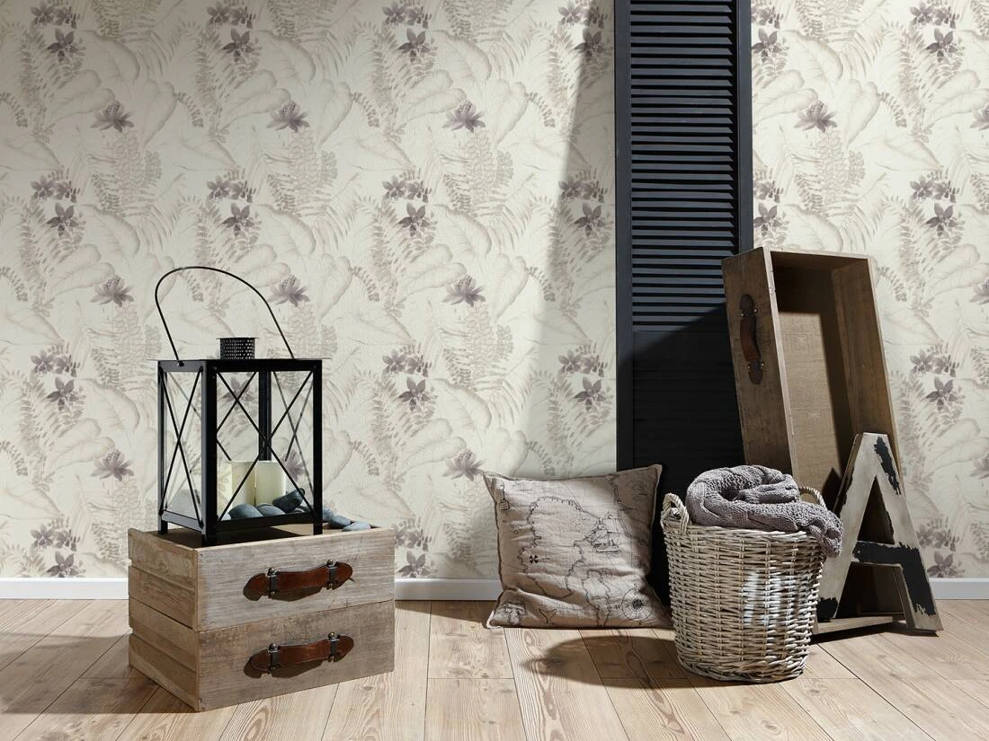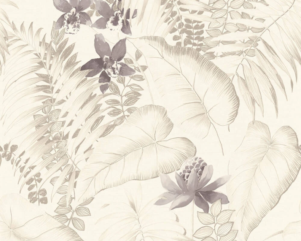 Tapete Vlies Floral Exotik Blumen Exotic Life AS Creation weiß-beige braun grau 37279-3 | 372793