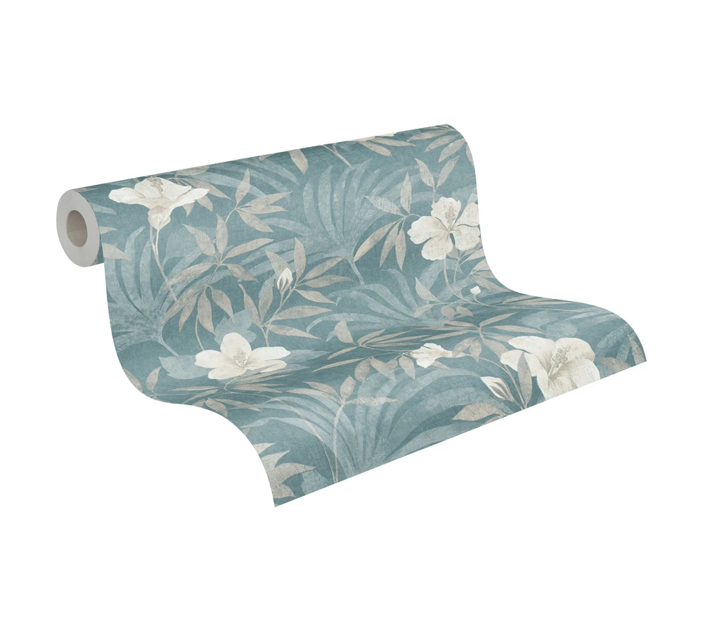Tapete Vlies Blumen Blätter Floral blau beige weiß Cuba AS Creation 38028-5