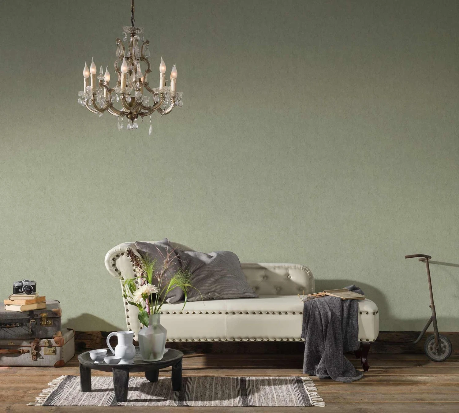 Die verspielten, romantischen Vlietapeten der Kollektion Romatico laden zum Träumen ein. Die Tapete Uni meliert in grün, Glanz versprüht eine sinnliche Wohnathmosphäre und strahlt Gemütlichkeit aus. Zudem entschleunigt sie den Alltag und kann mit sehr guten Materialeigenschaften beeindrucken.