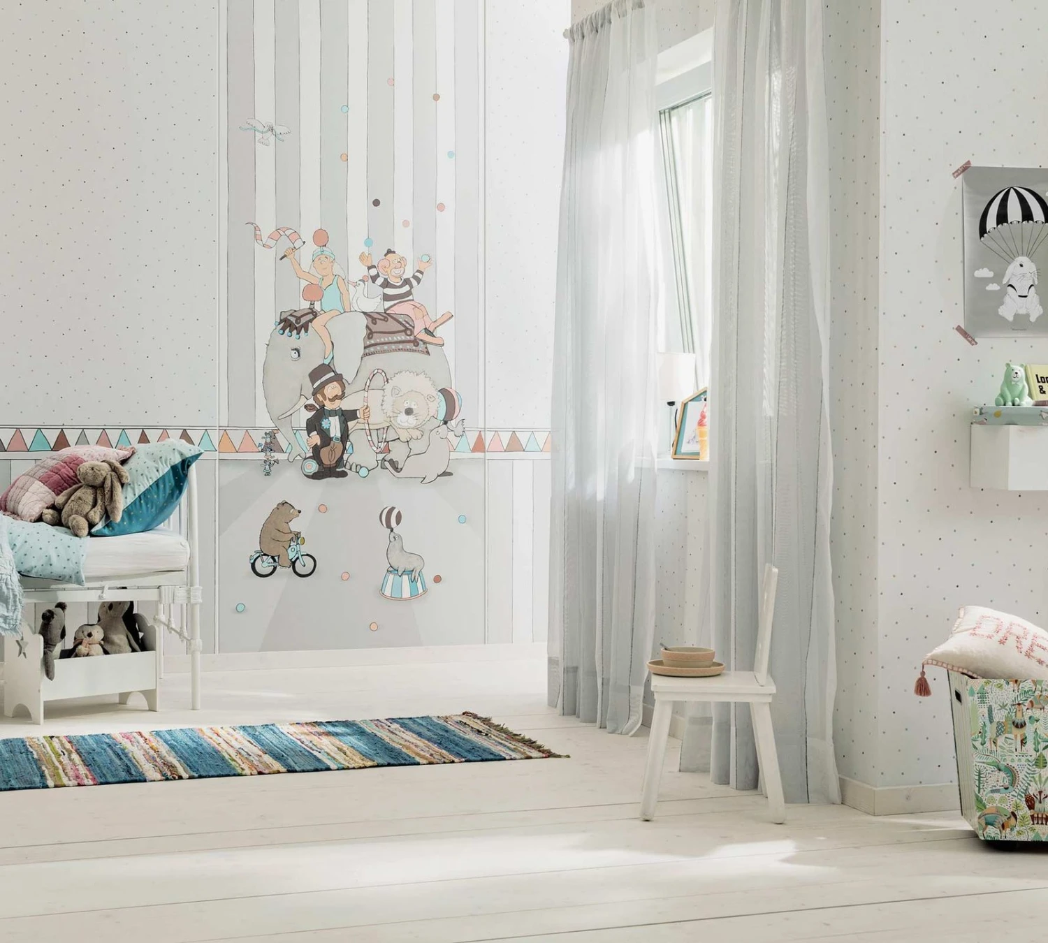 Zusammen mit dem Kinderbuch Illustrator Jonas Kötz hat Marburg eine supersüße Kindertapeten-Kollektion auf den Markt gebracht. Die niedlichen Motive lassen dich dahin schmelzen und bringen jedes Kind zum staunen. Mit dem Zirkusmanege des Kinder Wandbilds 46508 in grau und bunt verschönerest du jedes Kinderzimmer im Nu. Des Weiteren überzeugt das Kinder Wandbild mit besonders gesundheitsfreundlichen und praktischen Eigenschaften. Sie ist hoch waschbeständig, hat eine gute Lichtbeständigkeit und ist bei Bedarf wieder restlos trocken abziehbar.