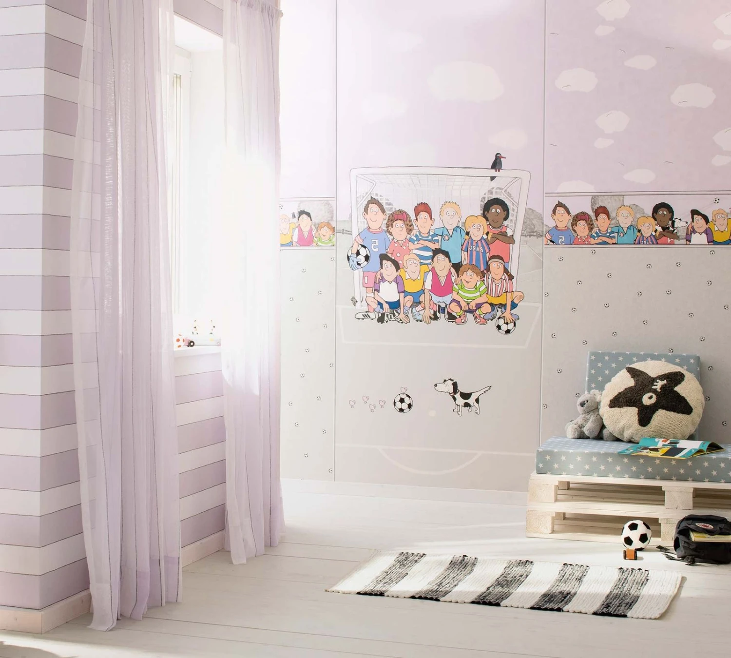 Zusammen mit dem Kinderbuch Illustrator Jonas Kötz hat Marburg eine supersüße Kindertapeten-Kollektion auf den Markt gebracht. Die niedlichen Motive lassen dich dahin schmelzen und bringen jedes Kind zum staunen. Mit dem Fußballmannschaft der Kinderbordüre 46513 in bunt und rosa verschönerest du jedes Kinderzimmer im Nu. Des Weiteren überzeugt die Kinderbordüre mit besonders gesundheitsfreundlichen und praktischen Eigenschaften. Sie ist hoch waschbeständig, hat eine gute Lichtbeständigkeit und ist bei Bedarf wieder restlos trocken abziehbar.