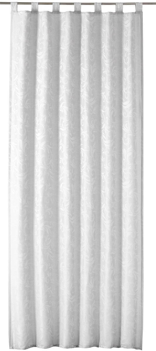 Der Schlaufenschal Kensington 00 verkörpert mit dem Rankenmotiv in weiß moderne Natürlichkeit. Für die Herstellung dieses Motivs ist die Jacquard-Technik angewendet worden. Gleichzeitig verwandelt der blickdichte Schlaufenschal das einfallende Tageslicht in ein stimmungsvolles Farbenspiel und verleiht damit dem Wohnambienten einen gemütlichen Charme.