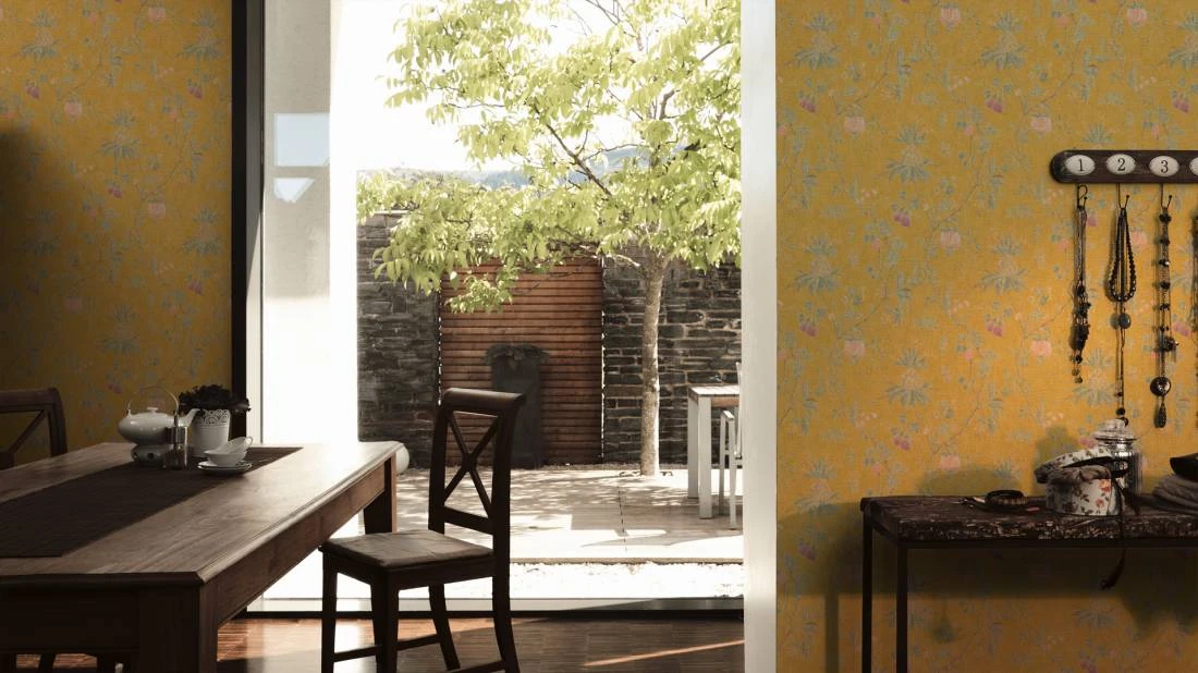 Tapete Vlies Baum Barock Gelb Grün 36719-4