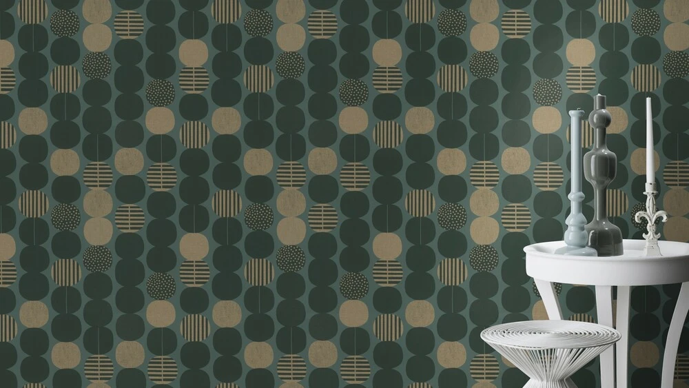 Die in dem Amsterdamer Studio Onszelf designten Tapeten von Rasch aus der Kollektion Amazing sind mit Liebe und Hingabe entworfen worden und bringen ein fröhliches Lebensgefühl in deine eigenen vier Wände. Die Vliestapete mit grafischen Kreisen in dunkelgrün und gold ist ein schöner Hingucker und strahlt Gemütlichkeit und Geborgenheit aus.