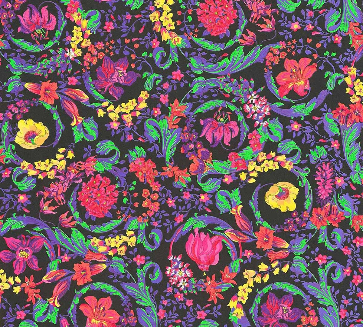 Mit den Vliestapeten der Versace Home 5 Kollektion bringen Sie den einzigartigen Stil der Luxusmarke Versace an Ihre WĂ€nde. Die Tapeten zeigen typische Versace Motive wie Medusaköpfe oder MĂ€andermuster. Aber auch schlichte Uni-Tapeten können Sie hier finden. Die Tapete 38706-1 in Schwarz, Pink-, Gelb-, GrĂŒn- und Lilatönen, mit Glitzer, besticht durch ein edles Blumenmuster. Lassen Sie sich von den Versace Home Tapeten ĂŒberzeugen und entdecken Sie die komplette Kollektion bei uns im Shop.