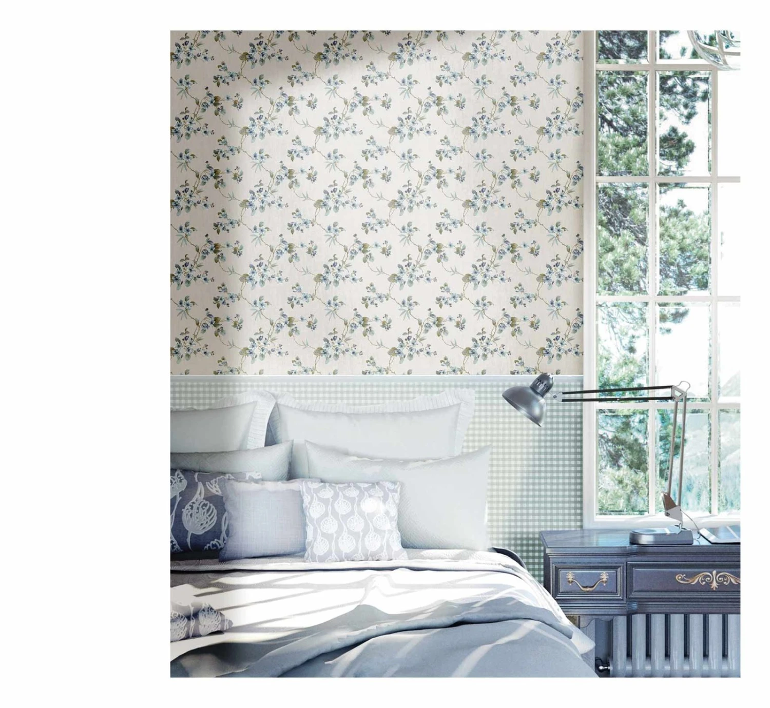 Sie träumen von Ihrem eigenen lichtvollen Cottage, aber das Landhaus fehlt Ihnen? Mit den Tapeten der Kollektion „Blooming Garden 9“ von World Wide Walls machen Sie aus Träumen Realität – auch in der kleinsten Wohnung! Die Vinyl-auf-Vlies-Tapete 007802 mit zarten Blumenranken in beige, türkis und graugrün bringt Ihnen lichtvolle, romantische Shabby Chic Gemütlichkeit auch auf kleinstem Raum. Arrangieren Sie sich Ihre persönliches zwei- oder gar dreiteiliges Traum-Wanddesign mit dieser liebenswerten Kollektion und verändern Sie Ihr Wohngefühl zuhause komplett.